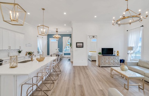 This magnificent newly renovated and professionally decorated historic single-story home is located in the Marigny Triangle neighborhood. This location allows you to experience all New Orleans has to offer. With a walkability score of 95% you are just 3 blocks from the French Quarter, 4 blocks from Frenchman Street's famous music halls and steps to the Rampart streetcar line that provides easy access to the entire city. Enjoy your stay in this 5- bedroom 4- bathroom, 2500 sq foot home, featuring a spacious open living, kitchen and dining area that will accommodate large groups comfortably. To the rear of the home, is the large open private courtyard that offers guest an additional place to gather, relax and unwind.