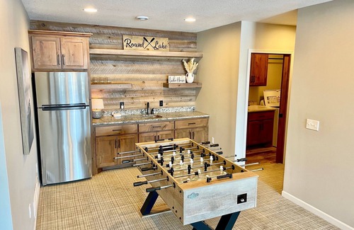 • Spacious family room with comfy sectional sofa, wet bar, fridge, foosball table, and 75" TV. All TV's include free access to YouTube TV, Netflix, Prime Video, Hulu, Disney+, Peacock and more.