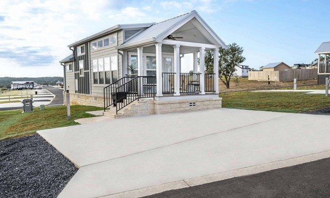 Bella Vista - 052- Bella Vista, or the bell of the ball depending on who you're asking is perfectly designed for your comfortable stay. This enchanted home provides a beautiful ambiance from curb to master suite. The inviting porch offers outdoor comfort and seating for evening cocktails with hill country sunsets. Upon entry, the decor reminds you of our western hills and the local music flavor that dances from the air at the resort. The full couch offers space to unwind with the entertainment center above fireplace. Upstairs, the loft offers sleeping arrangements for two and downstairs the master queen provides space to dose off as the stars come out. Come and see that Bella certainly does provide Vistas. *This unit is not pet friendly*