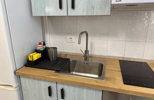 This cozy apartment, located on a semi-basement level, offers everything you need for a comfortable stay: a fully equipped kitchen, a living room, a separate bedroom, and a bathroom. The natural materials and soft, calming tones create the perfect atmosphere to relax and recharge.