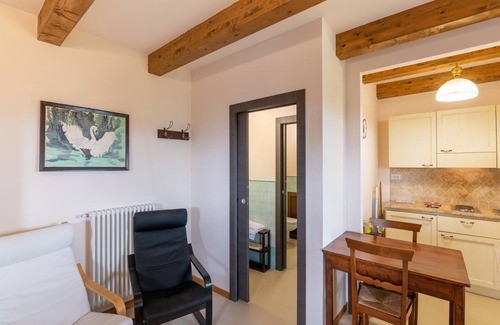 Experience tranquillity at this charming farmhouse with a double bed in Caprese Michelangelo to accommodate 2 guests. This farmhouse is perfect for a couple or a small family and features a shared swimming pool and a private terrace. You will find local restaurants steps away from the farmhouse, perfect for tasting delicious delicacies. Visit the bustling town centre of Caprese Michelangelo to experience the thriving culture, 2.5 km away. The farmhouse is on the ground floor of a restored barn. It has an attractive design and a warm atmosphere that's heightened by the wooden ceiling beams. The private terrace in front of the farmhouse is partially covered and allows you to enjoy the view of the Tuscan hills. You can cool off in the swimming pool on hot days. The host also provides a cot and a high chair on request. You can even prepare delicious meals or indulge in a fun barbecue at home.