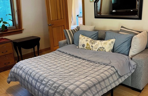 Bedroom with large master bath. Lockoff room with private front entrance. Kayak, swim, or bring your paddleboard or boat. Feed the ducks and enjoy the Egrets and Eagles. Use the front or back stone patios to relax or sit on the dock for splendid sunsets. Closeby beach and Association Pavillion is avialable or use our private Lakefront. Off street parking, very safe and quiet. Master bathroom with whirlpool tub / shower. High speed internet for TV or business. Beautiful flowers in the summer, Fall Foliage is spectacular and multiple ski areas nearby. With the provided mini fridge and microwave / airfryer why stay in a small hotel room? There are many Hiking trails including the Appalachian and also one by a stream within 1 mile. Close to all Berkshire attractions such as Tanglewood, Jacobs Pillow, Norman Rockwell museum, Mass MOCA, Mount Greylock, Etc,