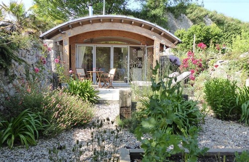 The Sea Breeze Beach House cabin is situated in the centre of the coastal village of Manorbier, it is a 6 minute walk to Manorbier castle, the beach and the award winning Pembrokeshire Coast Path. The beach house is an architect designed eco cabin made of wood with a sedum roof. It is built within its own south facing private, secluded garden.
