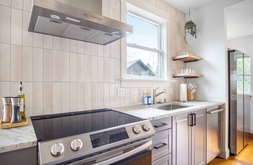Experience vintage charm and modern comfort at the “Oregon Oasis.” Just a short stroll from the most vibrant spots and within easy reach of top sights. Brand-new, fully-equipped kitchen with coffee/tea bar, 3 full bathrooms give everyone privacy, dedicated workspaces with super-fast wifi, serene backyard.