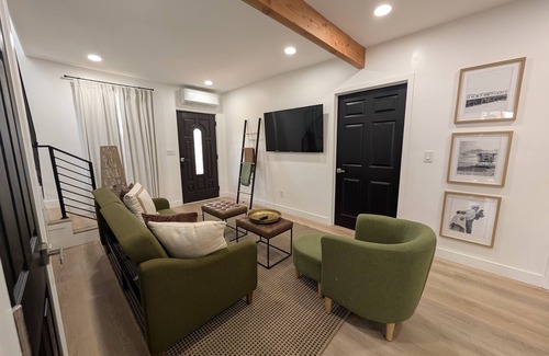 Purposefully remodeled we are one block from DT Chula Vista with 3 bedrooms 2.5 bathrooms can comfortably sleep up to 9 people. We are animal lovers so we designed the house to be very pet friendly with a doggy door, an outdoor doggy shower to keep your furry family members clean easier, and furnished the house with pet friendly furniture. How has washer and dryer, all brand new LG appliances, mini split a/c in every room, a brand new tankless water heater for unlimited hot water, a newly built roof covered trex deck with natural gas fire pit you'll never have to buy propane. Home office space suitable for 2 to work simultaneously. And let's not for the location, 8 miles from the San Ysidro border and 8 miles from Gaslamp. Easy access to the 5, 805, & 54 fwys. 30 day minimum inquire for pet approval.