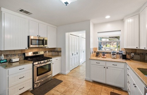 Welcome to our jaw-droppin' Fort Worth home, right next to Dickies Arena! 3 big bedrooms, 2 full baths, and fully stocked kitchens for cookin' up a storm. Comfy king-size beds in the master and second bedroom, and a comfortable third bedroom with three cozy twin beds.