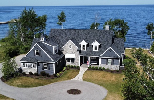 Featured in the 2017 Door County Showcase of Homes, this cottage is all new construction on the beautiful, wooded Green Bay shoreline. This open-concept home features real hickory wood floors, two-zoned heat and central air conditioning, and tons of large windows that offer amazing views of the water. Newly added in winter of 2023 is Starlink satellite internet.