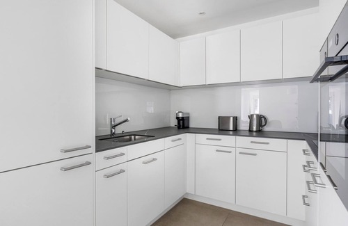 Thoughtfully designed with bespoke finishes, modern furnishings, and a fully equipped kitchen, you’ll enjoy that “I’m home” feeling with this Blueground apartment. Whether you’re lounging in your sophisticated living room streaming the latest and greatest entertainment on the smart TV or premium wireless speaker, or getting some well-earned rest on the superior quality mattress with luxury linens, you’ll fall in love with everything this Gewerbeschule apartment has to offer. This apartment also offers in-apartment laundry.