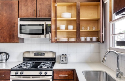 This Venice apartment invites you to explore the area’s buzzing beach spirit with a sense of luxury. Bordered by Santa Monica to the north and Marina del Rey to the south, Venice is home to a diverse mix of attractions and activities. From the boardwalk that stretches over two miles, to the Venice Canals that show a completely different side of the neighborhood, this area has no shortage of movie-worthy backdrops. A great place for shopping and dining is Abbot Kinney Boulevard with some of the city's best boutiques, galleries and restaurants.