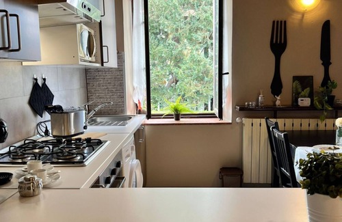 In the charming setting of the Lombard house, in the municipality of Castelletto Ticino, you will find Casa Giolito, a bright apartment that offers two bedrooms, both with two single beds, a bathroom with a shower, and a living room with a kitchenette and smart TV. The equipped kitchen is complete with an oven, microwave, kettle, and coffee machine. Ironing board, iron, and washing machine are included in the apartment\'s amenities.
