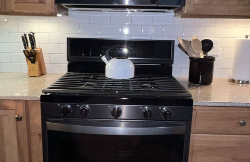 ALL NEW KITCHEN APPLIANCES INCLUDING 5 BURNER GAS RANGE (new fridge, microwave, dishwasher)