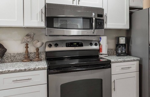 The 2nd bedroom has NEW KING MATTRESS with a 36" flat screen .The full bath in this bedroom also as a shower/ tub combo. The stack-able washer and dryer is located between the 2 bedrooms to help dry your beach towels.