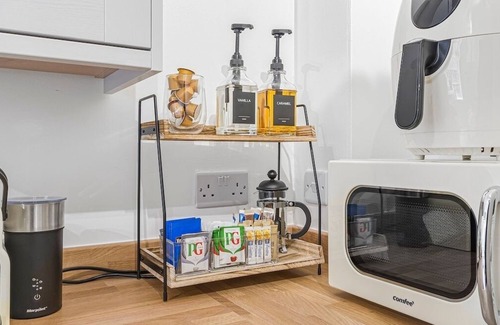 The kitchen is fully equipped with everything you could need: Montpellier fridge freezer, air fryer, microwave, Nespresso with plenty of pods, full utensils, and a kitchen cleaning kit including foil, cling film, and baking paper. The dining area is styled for hosting, so you can enjoy meals in comfort and style. Extra touches include hot chocolate and Biscoff biscuits.