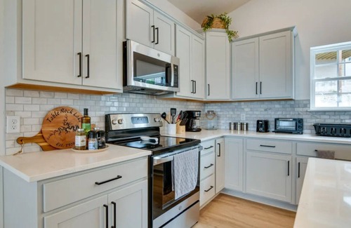 Community Pool Access (Open Seasonally) | Newly Built | Near Marina Rentals Bedroom 1: King Bed | Bedroom 2: King Bed | Bedroom 3: King Bed | Bedroom 4: 2 Twin Bunk Beds | Bedroom 5: King Bed | Additional Sleeping: Pack 'n Play OUTDOOR LIVING: Covered 2-story deck, panoramic lake views, gas fireplace, patio furniture, dining area, gas grill (propane provided) INDOOR LIVING: Smart TVs, gas fireplace, 2 dining tables, foosball table, board games, ceiling fans, desk workspace, game room w/ kitchenette, ping pong table, books, pillow-top mattresses KITCHEN: Stainless steel appliances, bar seating, electric stovetop, microwave, drip coffee maker, knife set, toaster, toaster oven, spices, blender, dishwasher, cooking basics GENERAL: Free WiFi, dual zone heating & air conditioning, washer & dryer, linens & towels, complimentary toiletries, high chair, iron & board, keyless entry FAQ: Step-free entry, 1st-floor bedroom & bathroom, Ring doorbell (facing out), quiet hours (10:00 PM-7:00 AM), pet fee (paid pre-trip) PARKING: Driveway parking (5 vehicles), EV charger