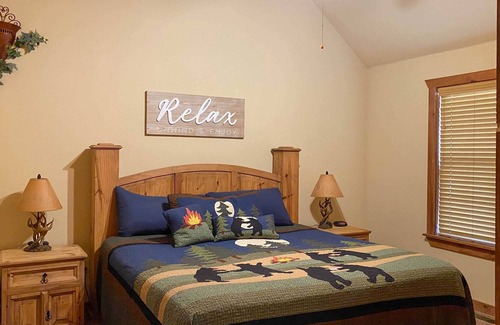 A peaceful Ozarks retreat with proximity to all the thrilling amusement parks, lakefront fun, hiking, museums, shopping, and dining awaits at this beautiful vacation rental. Hosting 2 bedrooms, 2 en-suite baths, and a cabin-style interior with modern comforts, this property offers all the essentials plus an ideal location in Stonebridge Village. Golf, swim, and more on-site or venture only 5 miles for an afternoon in Silver Dollar City. Enjoy a lake day then return to relax on the deck!