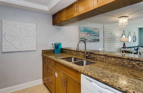 The fully equipped kitchen includes essentials such as a Keurig, blender, crockpot, toaster, and more—perfect for whipping up a casual breakfast or a family feast. There's also a washer/dryer to take care of any sand-filled clothes.