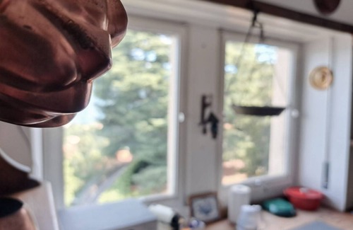 Upon entering, you\'re immediately welcomed by the authentic atmosphere of the accommodation, with wooden features and copper and ceramic decorations that reflect local traditions. The living room, furnished in a classic style and enriched with lush tropical plants, preserves typical period elements such as herringbone parquet flooring, wooden-beamed ceilings, and inlaid windows. From here, you access a small external balcony that opens onto a breathtaking view: from the snow-capped mountains on the horizon to the hills surrounding Como, the city center with its monuments, the first basin of Lake Como’s branch, and nearby Switzerland. A stunning view that lets you explore the territory from above, spotting the main attractions at a glance.The rustic-style kitchen, separated from the living room, is fully equipped with everything needed to cook just like at home. It features a beautiful counter with two stools by the window—perfect for enjoying breakfast or a snack while admiring the magnificent scenery. The sleeping area includes two bedrooms: one double and one with two single beds, both furnished with classic wrought-iron beds and practical wooden wardrobes. The bathroom has been recently renovated and features modern fittings and a spacious shower.