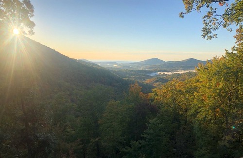 Escape to an amazing area of the country. Take in so many adventures and excursions in the "Land of Waterfalls", but only if you wish. You can also stay close to the cabin and enjoy the 4.2 acres of privacy, enjoy the waterfall from the back decks, wonder at the fantastic long-range views, or walk through the wonderfully developed equestrian community, The Divide at Bald Rock. Our subdivision has its own access to the Panthertown National Forest.