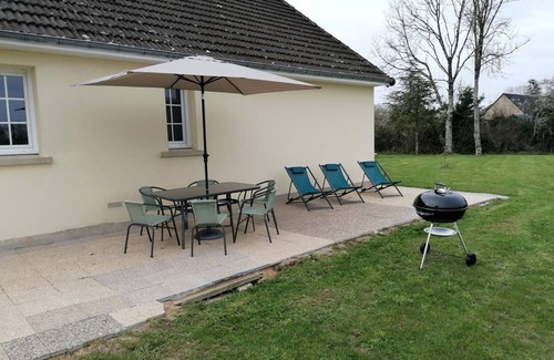 Detached house entirely on the ground floor. Living room with pellet stove (bags of pellets for a fee). TV, WIFI. Kitchen (oven, induction hob, dishwasher, refrigerator with freezer, microwave, Tassimo espresso machine, coffee maker). Back kitchen with laundry area (washing machine). Separate toilet. Shower room (hairdryer). Bedroom 1 (1 bed [hidden]x[hidden] with desk, bedroom 2 (2 beds 90x[hidden], bedroom 3 (1 bed [hidden]x[hidden]. Baby equipment on request. Sheets provided and beds made upon arrival. Cleaning service at an additional cost. Electric heating (PAC) at an additional cost. Private enclosed grounds. Terrace. Garden furniture, barbecue, deckchairs. Parking. Fast charging point (15min) for electric cars 1km away. A few kilometers from Valognes, city of Art and History, you will find the ideal setting to relax in this house surrounded by greenery. Julien and Thérèse have renovated this lodge and welcome you to this peaceful hamlet. Highly functional, with its large walk-in shower and bright living room featuring a cozy pellet stove, this property is a delight for families, especially those who also enjoy the large garden. Located in the heart of the Cotentin Peninsula, you'll be about twenty kilometers from both the east and west coasts, offering the opportunity to visit iconic sites from Cap de Carteret to the port of St. Vaast-la-Hougue, via Cherbourg and its Cité de la Mer.