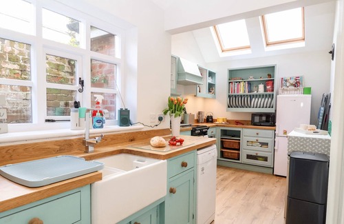 Amenities: Gas heating. Electric oven, ceramic hob, microwave, fridge/freezer, slim-line dishwasher, Kettle. Smart TV, WiFi. Bed linen and towels inc. in rent. Off-road parking for one small car. Front garden with patio area. Sorry, no smoking. Shop 3.2 miles, pub 0.2 miles. Note: The woodburner is not in use