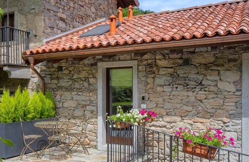 In the ancient stone village of Montorfano, built with granite extracted from the same mountain and famous all over the world, a hamlet of Mergozzo, on the first floor of an ancient and typical stone house, completely and luxuriously refurbished, there is the wonderful Ca' Vincenza, a very charming boutique apartment. The living room has a sitting area with a large TV and a modern design kitchen open onto it. In front of the entrance surrounded by flowers there is a table for four people for outdoor dining. At guests' disposal two bedrooms with double bed, both with beautiful design bathroom with shower. The comforts available to guests are very high. Near the house there is a small garden equipped with deck chairs and umbrella which is shared with Ca' Luigia, the other apartment on the ground floor of the house. Ca' Vincenza and Luigia can be rented together by a larger group of guests. The parking lot of the village of Montorfano is only 50 meters away on foot. This ancient village is a fascinating and unprecedented place to spend a holiday in absolute tranquility in the midst of the greenery and nature of this ancient village, far from the noise of the crowded places on the edge of the lake, but with the possibility of reaching the beach and the lake of Mergozzo in just 10 minutes on foot, through an easy road that descends from the mountain. In just five minutes by car you can reach Lake Maggiore. In front of the entrance to Ca' Vincenza surrounded by flowers there is a table for eating outdoors. Golf courses at 2.5 km. License number: 10304400086.
