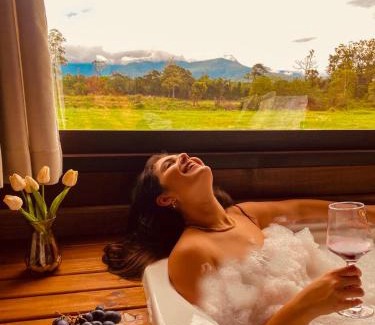 Food & DrinkChocolate/Cookies, Tea/Coffee maker, Bottle of water, MinibarBathroomHairdryer, Toilet, Bathtub or shower, Toilet paper, Bathtub, Shower, Private bathroom, Bathrobe, Spa tub, Body soap, TowelsMedia & TechnologyFlat-screen TV, Mobile hotspot device, TVGeneralTrash cans, Air conditioningKitchenCoffee machine, Kitchenware, Dining table, Microwave, Wine glasses, Kitchen, Toaster, Kitchenette, StovetopLiving AreaDining area, FireplaceViewMountain view, View, Garden viewBedroomLinensRoom AmenitiesSocket near the bed, Feather pillow, Hypoallergenic pillow, Non-feather pillowPhysical distancingSingle-room AC for guest accommodation |