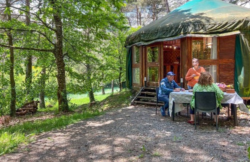 The Contemporaine yurt is located in Vitrac and is an ideal accommodation for a relaxing getaway. The 60 m² property consists of a living room, a well-equipped kitchen, three bedrooms and a bathroom, accommodating up to six people. Additional amenities include air conditioning, and a high chair is also available. This accommodation does not offer Wi-Fi or bath towels. The yurt features a private outdoor terrace, perfect for relaxing in the evening.