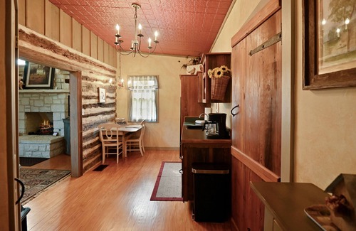The Chula Vista Cabin is a perfect country getaway experience that is located just 6 miles from downtown Fredericksburg. This cabin was built using antique oak logs from an 1800’s log cabin and yet has all the modern amenities and conveniences including a mid-sized kitchenette. There is also a Weber gas grill to compliment the kitchenette. Electric skillet has been placed in the unit.
