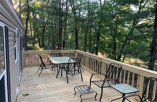 ** We have 8 cottages within the campground. Every unit is the exact same design as far as the inside lay out shown in the pictures. Some units have more trees than other, but each still have enough to get that Wisconsin camping feel. Each deck is the same size. All are within a similar location.**
