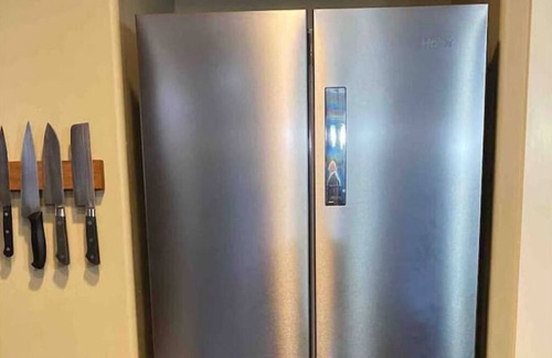 High quality cookware and kitchen amenities including professional Japanese kitchen knives for meal preparation.