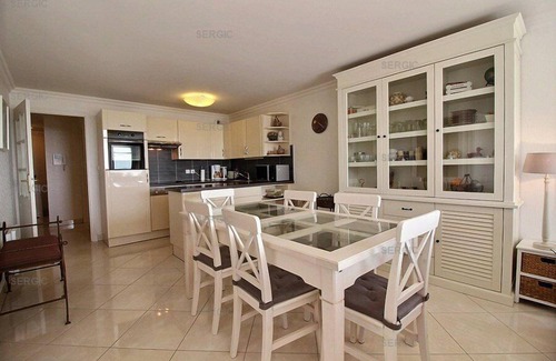 Beautiful apartment for 6 people offering a beautiful living room with kitchen, a living room, a bedroom with a bed of 160, a second room (without window) with two beds of 90, a bathroom, separate toilet, a beautiful terrace with sea view, table and chairs,