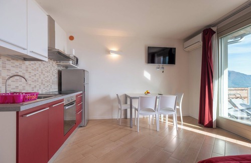 The three-room apartment, finely furnished, offers an amazing view of Lake Iseo and Montisola, and consists of a living area with kitchen complete with all appliances, table with chairs and sofa.