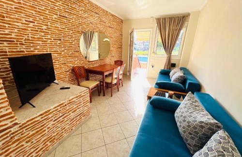 Featuring a garden, Carpe Diem Apartments provides accommodations in Psakoudia. This beachfront property offers access to a balcony and free Wifi. Providing a terrace and garden views, the spacious apartment includes 2 bedrooms, a living room, cable flat-screen TV, an equipped kitchen, and 1 bathroom with an a bath or shower. Towels and bed linen are featured in the apartment. The property has an outdoor dining area. Psakoudia Beach is a 2-minute walk from the apartment, while Anthropological Museum & Cave of Petralona is 24 miles away. Thessaloniki Airport is 42 miles from the property.