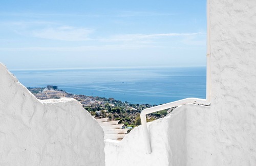 Casa de la Buena Vida Ocean Views, Terrace Tranquility in Benalmádena PuebloNestled in the charming white village of Benalmádena Pueblo, just 22 km from Málaga Airport, Casa de la Buena Vida is a stylish and spacious 3-bedroom townhouse designed for families, friends, or couples looking for a peaceful escape with stunning ocean views. Spanning 120 m² over two floors, this elegant retreat blends modern Scandinavian décor with the warmth and soul of Andalusia.Modern Living with Scenic TouchesComfortably laid out for up to 6 guests, the townhouse features: A bright open-plan living and dining area with a smart TV—perfect for cozy evenings or streaming your favourite series A fully equipped American-style kitchen with oven, fridge-freezer, dishwasher, microwave, coffee machine, and kitchenware Three double bedrooms with high-quality beds and relaxing views Two bathrooms with walk-in showers a separate guest toilet Air conditioning (hot/cold) and Wi-Fi throughout Private covered parking space in an underground garage 3 BedroomsMaster bedroom with king-size bed (180x200) and direct access to a terrace with panoramic ocean viewsSecond bedroom in calming white and blue tones, with queen-size bed (160x200) and French balconyThird bedroom with queen-size bed (160x200) and natural light overlooking the white village below 2 Bathrooms 1 Guest ToiletTwo modern bathrooms with walk-in showersAdditional guest toilet for convenience Outdoor Living with a View25 m² private terrace with garden furniture—ideal for breakfast in the sun or a drink at sunsetFurnished balconies with sea and mountain viewsSerene Secure Located in a quiet residential community Ideal base for beach outings, village walks, or day trips to Málaga and MarbellaNOTE: A security camera is installed at the entrance door, directed outward for privacy and protection.Distances to Local Highlights Nature reserve Butterfly Park: 850 m Restaurant Restaurante La Perla: 1 km Restaurant La Cúpula Lounge: 1 km Town centre Benalmádena Pueblo: 1 km Shops Aldi: 1 km Shops Carrefour supermarket: 2.5 km Sand beach Benalmádena Beach: 3 km Train station Torremuelle train station: 3 km Golf course Torrequebrada Golf Club: 5 km Town centre Benalmádena Marina: 8 km Town centre Mijas Pueblo: 8 km Amusement park Tivoli World: 10 km Water park Aqualand Torremolinos: 14 km Airport Málaga Airport (AGP): 22 km Town centre Málaga: 30 km Town centre Marbella: 36 km Your Costa del Sol Retreat AwaitsWhether you're exploring Andalusian villages, enjoying a round of golf, or simply watching the sunset from your terrace, Casa de la Buena Vida offers a welcoming base to make the most of your stay on the Costa del Sol—combining sea views, relaxation, and a touch of elegance all year round.
