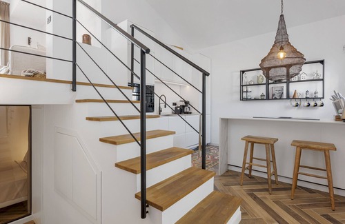 This townhouse comes with multiple terraces that have a super relaxed vibe. Whether you’re catching some sun upstairs or lounging on the beanbags downstairs, you can always find a cozy spot to relax and enjoy the fresh sea air.