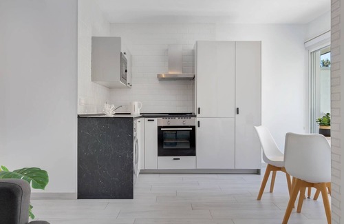 This charming property, located on a second floor without a lift, stands out for its cosy and practical layout. It has two bedrooms, both equipped with air conditioning systems that offer a pleasant temperature both in summer and winter, and double beds that ensure optimal rest. The open-plan kitchen, a modern and open space, is fully equipped with all the necessary utensils for everyday use, as well as essential appliances including a large fridge, oven and microwave, facilitating meal preparation in a welcoming environment.