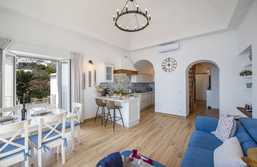 Casa Madonna del Mare is an ancient fisherman's house, completely revisited in a modern twist. The lights, the colours, the attention to detail, give style and warmth to the house, making every space pleasant and welcoming. The wide view of the sea - which seems to dominate from the large window of the living area - is the setting for this little jewel set in the rock. Every corner of the house is designed for the family, equipped with items for children, such as a cot and a high chair. The location is panoramic and peaceful. Wifi is available throughout the house. To reach the house it is necessary to climb about 150 steps. It is recommended to reach us without a car.