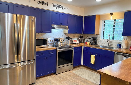 The floorplan is perfect for a couples' getaway or a family retreat offering three bedrooms. The first room boasts a king-size bed, the 2nd bedroom offers a queen size and with the last and largest, the "Bunkroom", offering a king-size bed along with a twin trundle bed. The largest bedroom also has a work area set up for your next stay-cation . The living room loveseat converts to a twin bed that is also available for the little ones who prefer their own space. Full-size washer and dryer available for extended stays.