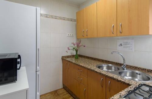 Full kitchen with refrigerator, microwave with grill, washing machine and all necessary utensils.