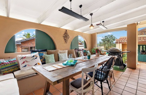 This light and bright Tuscan influenced home encompasses 4 bedroom, 2 bathrooms, an electric heated pool (heated during Spring and Autumn), and only 100m from the patrolled surf beach. This is certainly a stay that the whole family can enjoy, relax and unwind.