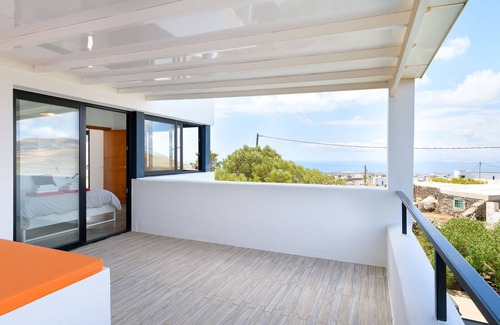 Upper floor: Bedroom with double bed, safe, terrace with views and full bathroom with hairdryer, magnifying mirror and high-quality amenities (gel/shampoo and moisturiser dispensers). Additionally, there is an additional terrace with views of the sea and volcanoes.