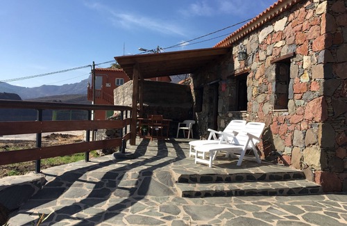 Canarian cottage in the center of the island of Gran Canaria, with amazing views and total tranquility. Consisting of 1 bedroom, bathroom, alcove under the roof, kitchen/livingroom and terrace with amazing unhindered views. With wifi, tv and 15 liter water heater. Fully furnished and equipped with all the basics.