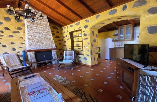 Is an old canarian house which was renovated in an old style, comfortably equipped. Casa Trujillo is situated in the upper part of the valley in La Vizcaína, about 5 km far from the coast. To reach the house you go up stairs approx. for 100 m.The big terrace is equipped with deckchairs, table and chairs, barbeque and offers a panoramic view the valley down to the sea.Entering the house you find a cosey living room with sleeping sofa for two. One sleeping room contains a double bed, the other one a single bed. The kitchen is designed in a country style and also offers place to sit. Washing machine, SAT-TV and Wifi are at your disposal.The price of the house is valid for 1-2 two persons. Any further person pays en addition.