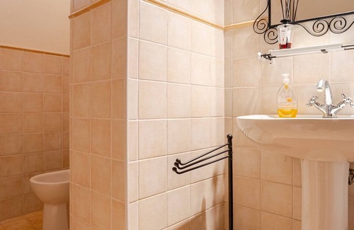 Three of the five bedrooms have en-suite bathrooms, each featuring a bathtub. The fourth bathroom serves the other two bedrooms, and the fifth is located on the ground floor, easily accessible from all common areas. Each bathroom is equipped with toiletries, towels, and all the necessary bathroom amenities, ensuring an impeccable stay experience. Additionally, a linen change service is available to always ensure maximum freshness and cleanliness.