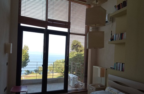 The middle villa is 3storey, equipped with a lift. It can host up to 6 persons. It has 2 bedrooms in the 3d level and a big bathroom with bathtub, a cozy round living room in the middle level with a wc and a small secondary kitchen and finally a big kitchen in the ground level with sofa bed and a bathroom with shower. Regarding the bedding conditions one bedroom is equipped with a double bed and the second one with two single beds. In the ground level there is a double sofa bed.