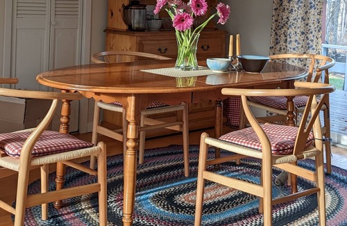 This is a winterized (1200 sq ft on one level) cedar home with 3 bedrooms, well-equipped kitchen with dishwasher, modern bathroom with walk-in shower and large, thoughtfully decorated living room with sofabed, wood-burning fireplace and quality furnishings that are a mix of traditional, local vintage and contemporary pieces. It is on 2/3 acre with both landscaped and wooded areas to explore, and includes access to the development's shoreline, footpaths and common areas. Ideal for small friend groups looking for a chill home base, couples, golfers, and small families. Municipal water ensures unlimited fresh tap water supply.