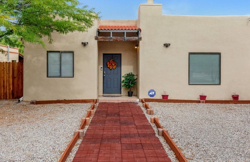 An ideally located home base for your Tucson adventures, this spacious and well-appointed 2,000 square foot 4-bedroom/ 2 bathroom house is in the heart of Tucson. Dozens of restaurants in walking distance, a 5 minute walk to University of Arizona and Banner, 10 min drive to downtown, Tucson Convention Center, the Botanical Gardens and zoo, and 15 min drive to countless hiking and biking trails, golf courses, and outdoor sports. Living room has two comfortable sofabeds and a 65” 4K Roku TV with complimentary Netflix and cable (Sling), perfect for catching the game or a movie. The inviting bedrooms feature pillowtop mattresses to ensure a great night’s sleep . Modern kitchen is fully-stocked with stainless steel appliances (including a dishwasher) and all you need to cook anything from breakfast to Thanksgiving dinner. Additional amenities include in-suite washer/dryer, complimentary coffee and tea, and dedicated off-street parking.