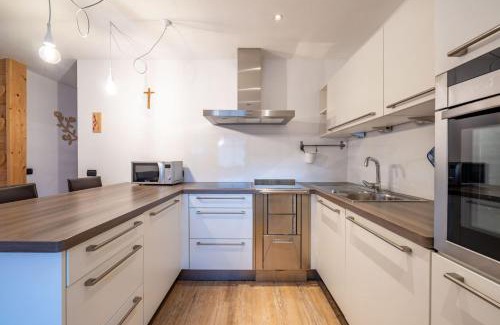 InternetInternet facilities, Wireless internetBathroomToilet, Towels, Hairdryer, Shower, Bidet, Private bathroomMedia & TechnologyTVOutdoorsBalconyKitchenOven, Dining table, Kitchen, Electric kettle, Wine glasses, Microwave, Refrigerator, Dishwasher, Kitchenware, Stovetop, Washing machineLiving AreaDining area, Sitting area, SofaGeneralHardwood or parquet floors, Private entranceViewView, Mountain viewBedroomWardrobe or closetBuilding CharacteristicsPrivate apartment in building |