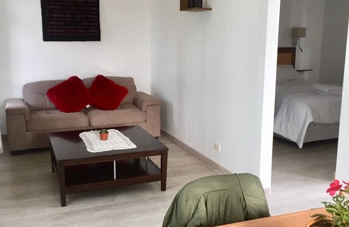 Beautiful bungalows are the perfect choice for friends and family -up to four persons- who want to be near -3 minutes in car- the Plaza and at the same time have some privacy. There is a nice living room with settee bed, dining room, fully equipped modern kitchen, a comfortable dorm with full bed, clean and soft sheets, closets and TV (and cable Direct TV). The bathroom has therma and shower facilities. There are windows all over the bungalow that make all the areas bright.