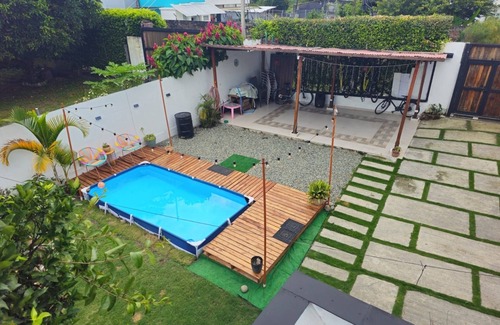Pero la magia no termina dentro. Sal y sumérgete en tu propia piscina privada , o relájate en nuestra zona social , ideal para tertulias, juegos y risas bajo el sol quindiano. Aquí, cada rincón está pensado para que disfrutes al máximo.